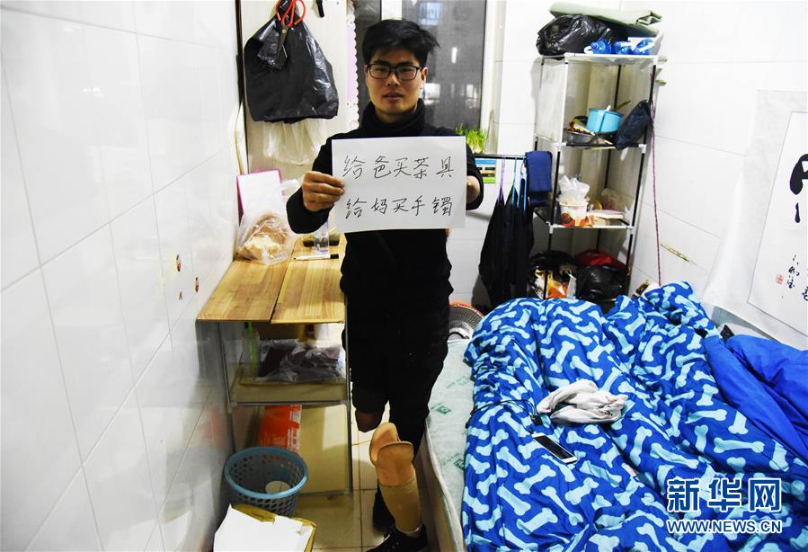 1月24日,董洪喜在展示他写的新年愿望:“给爸买茶具,给妈买手镯”。 新华社记者王凯 摄