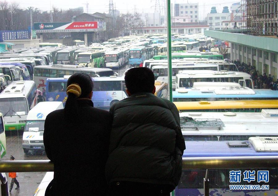 2003年1月31日,两位旅客在南京长途汽车站候车大厅候车。新华社记者孙参 摄