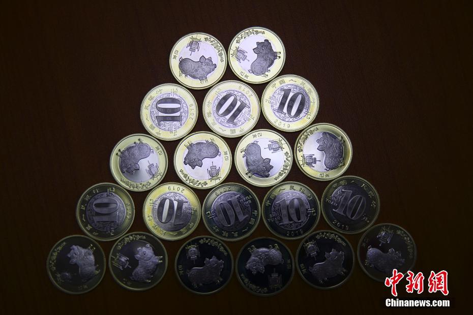 1月25日,由中国人民银行发行的2019年贺岁纪念币(又名猪年生肖纪念币)开始公开兑换。该纪念币面额为10元,直径为27毫米,材质为双色铜合金,发行数量为2.5亿枚。中新社记者 张云 摄
