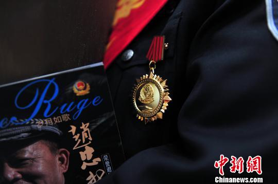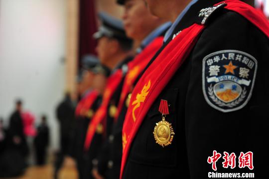 成都铁路公安处退休民警被授予从警荣誉纪念章。 王晓丹 摄