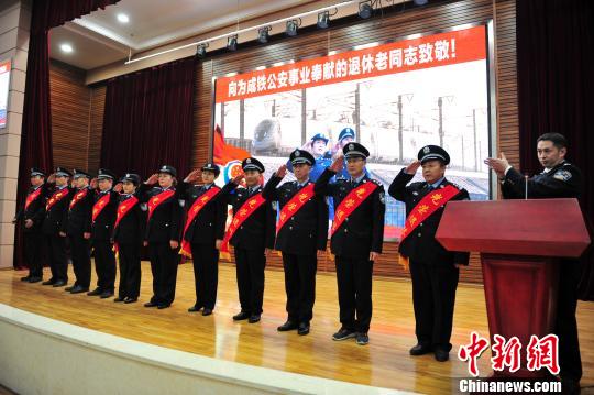为了给退休民警数十年从警岁月留下美好的回忆,激励广大在职民警团结拼搏、奋战春运,成都铁路公安处于日前举行民警退休仪式。向28名退休民警颁授了从警荣誉纪念章和个人纪念册。为离退休老同志举行退休仪式是成都铁路公安处“暖警心、聚警魂”工程的一部分,向从警几十年的退休老同志颁授从警荣誉纪念章和个人纪念册,既是对老同志们献身公安事业,奉献青春的一份荣誉和肯定,更是对新时期铁警精神的一种颂扬和传承。