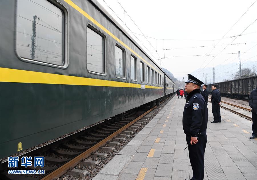 1月24日,穆建军在娘子关站站台目送列车驶离。 新华社记者 牟宇 摄