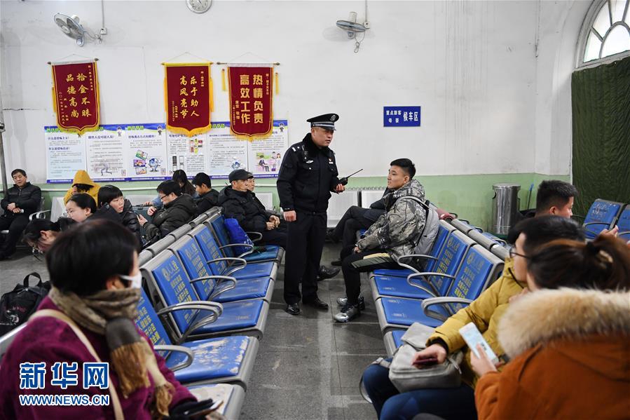1月24日,穆建军在娘子关站候车室内与旅客交谈。 新华社记者 牟宇 摄