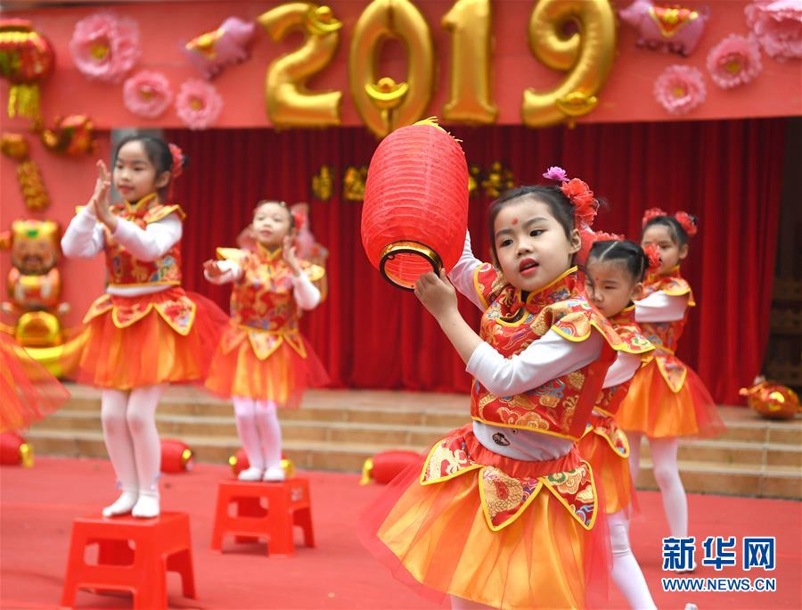 1月25日,孩子们在表演舞蹈。 新华社记者 周华 摄