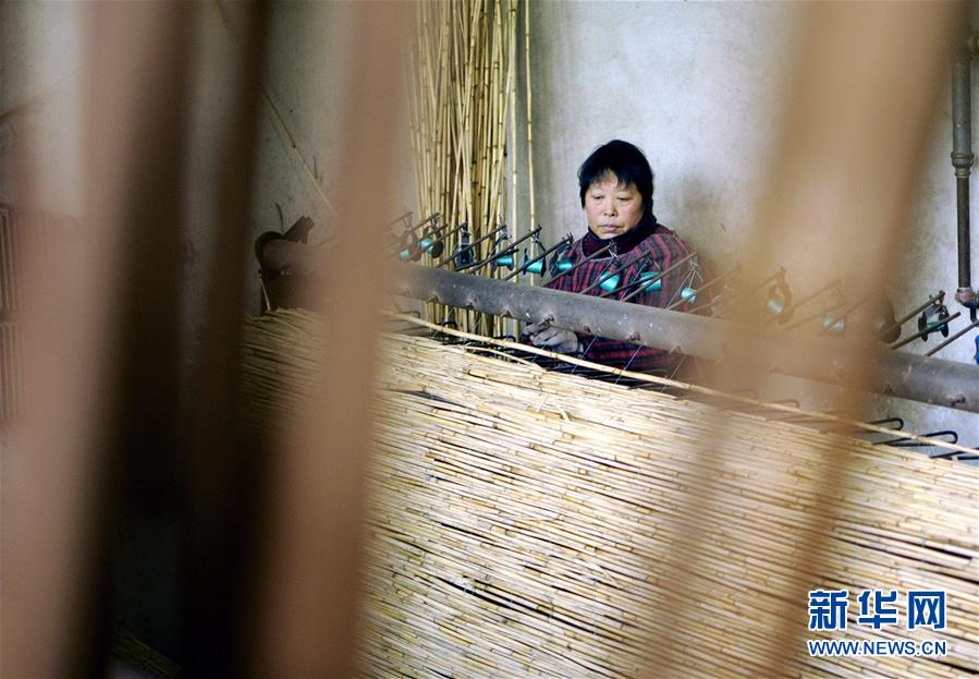 1月25日,巨鹿县乍补寨村村民编织苇箔。 河北省巨鹿县观寨乡乍补寨村是当地小有名气的芦苇编织专业村,村民利用冬闲时节,将芦苇加工成颇具特色的苇箔、苇席等产品销往周边地区,促进冬季增收。 新华社记者 牟宇 摄
