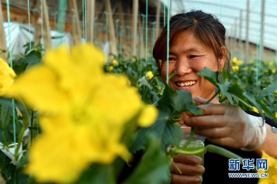 1月25日,在寿光市纪台镇齐家村,菜农李向莲在蔬菜大棚里给丝瓜人工授粉。在2018年的洪涝灾害中,她家的大棚进水导致部分坍塌。 山东省寿光市在2018年洪涝灾害发生后,将蔬菜大棚修复重建作为加快灾后恢复生产的重中之重。目前,寿光市10.67万个受灾蔬菜大棚已有10.07万个完成加固修复,菜农们加紧生产,供应春节市场。 新华社记者 郭绪雷 摄