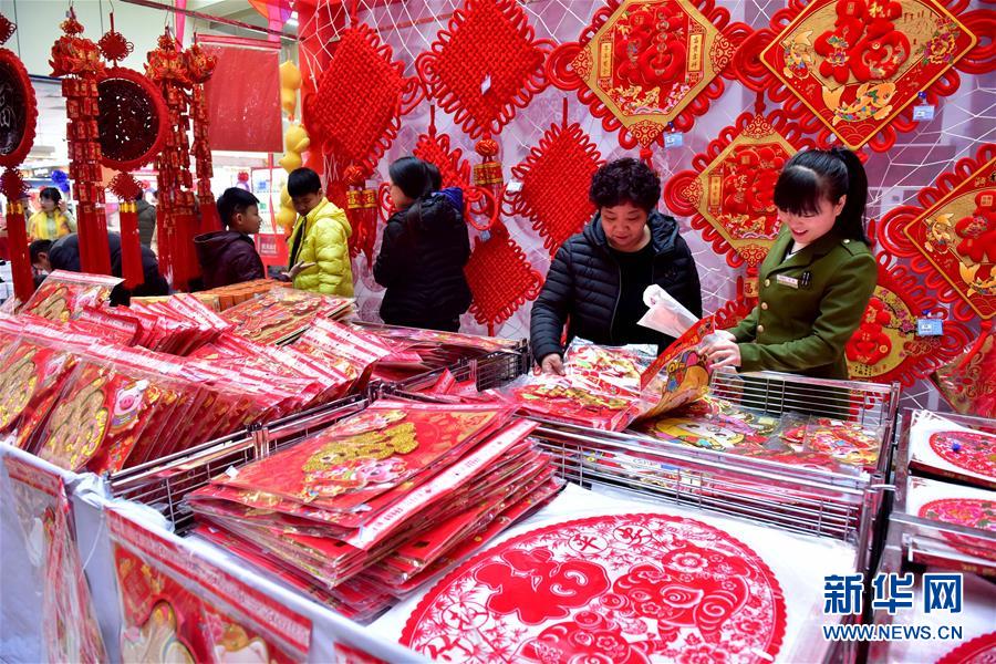 1月25日,市民在河北石家庄新乐市一家超市选购新春饰品。 随着春节临近,春联、福字和红灯笼扮靓了大街小巷。 新华社发(贾敏杰 摄)
