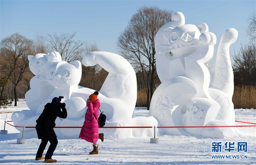 1月26日,游客在清华大学队作品《自由的三只猫》前留影。 新华社记者 王建威 摄