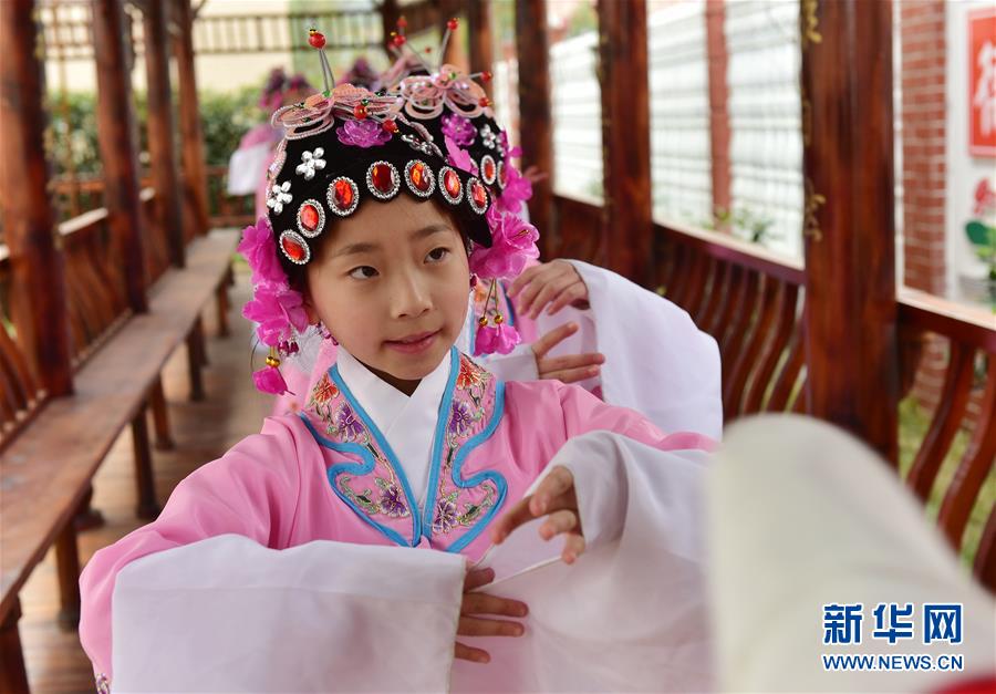 1月26日,湖北省秭归县希望小学的学生在练习戏曲动作。 新华社发(王辉富 摄)