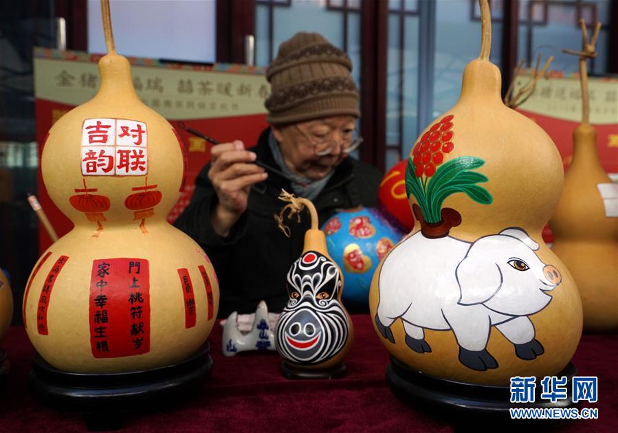 1月26日,葫芦画艺人在活动现场创作。 新华社记者孙参摄