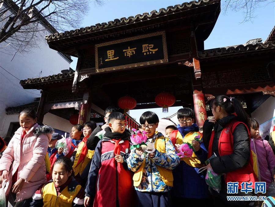 1月26日,民俗文化节活动现场迎来一批小参观者。 新华社记者孙参摄