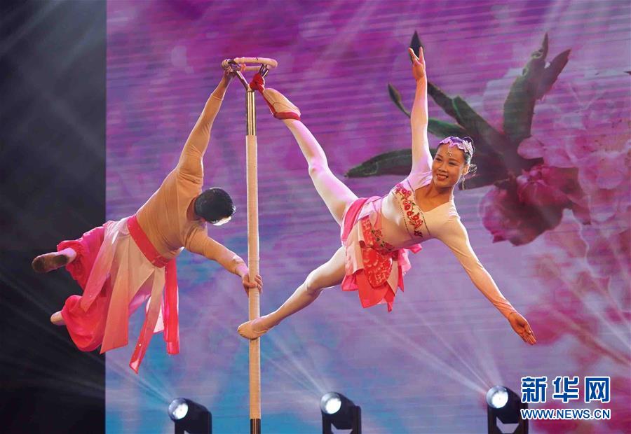 1月26日,长三角打工者艺术团的成员在表演杂技。 新华社记者 季春鹏摄