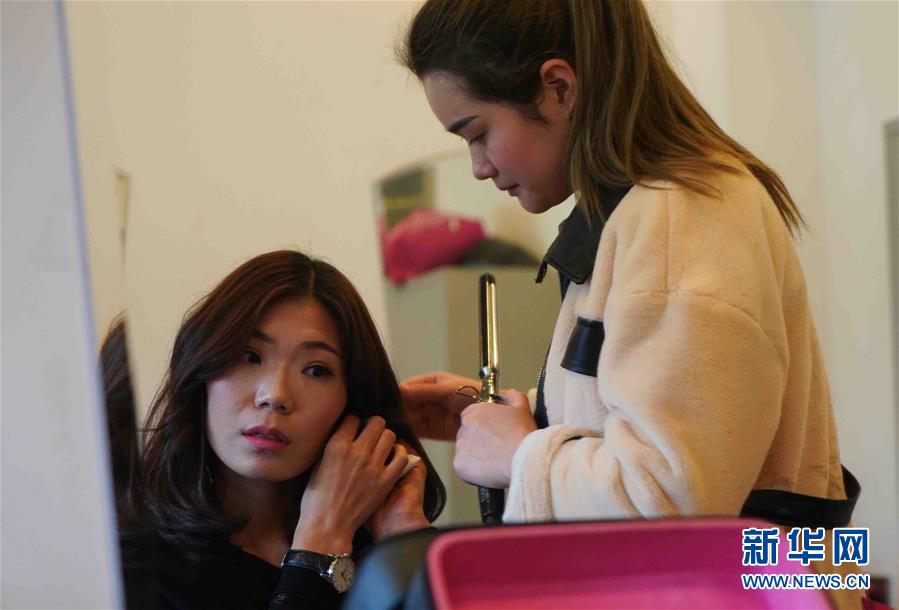 1月26日,长三角打工者艺术团的成员冯瑞雪在演出前化妆。 新华社记者 季春鹏摄