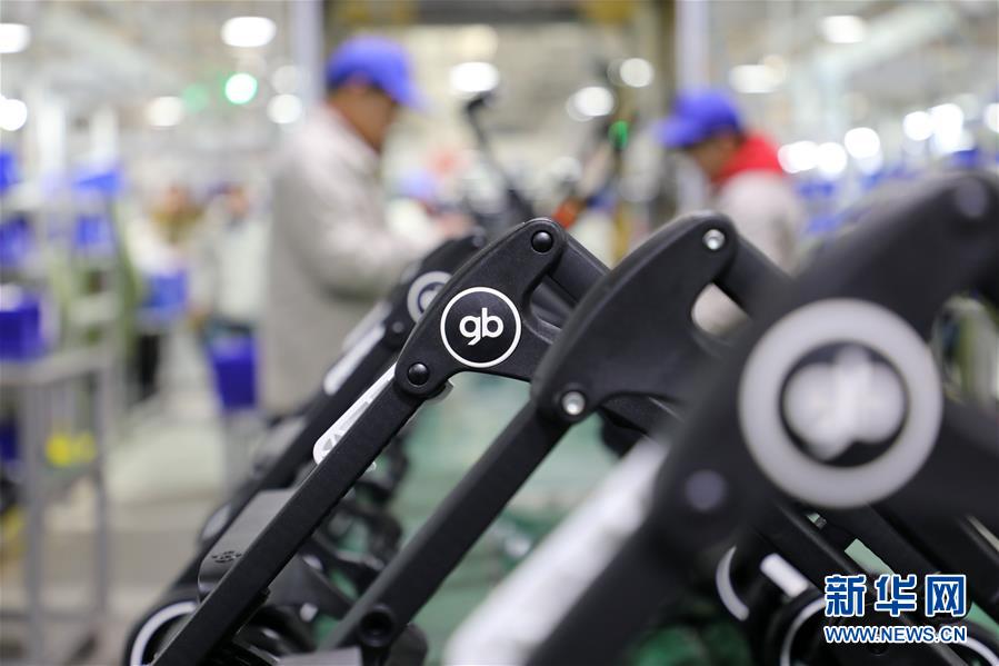 工人在江苏昆山好孩子集团装配线上工作(1月24日摄)。 新华社发(薛宏宇 摄)