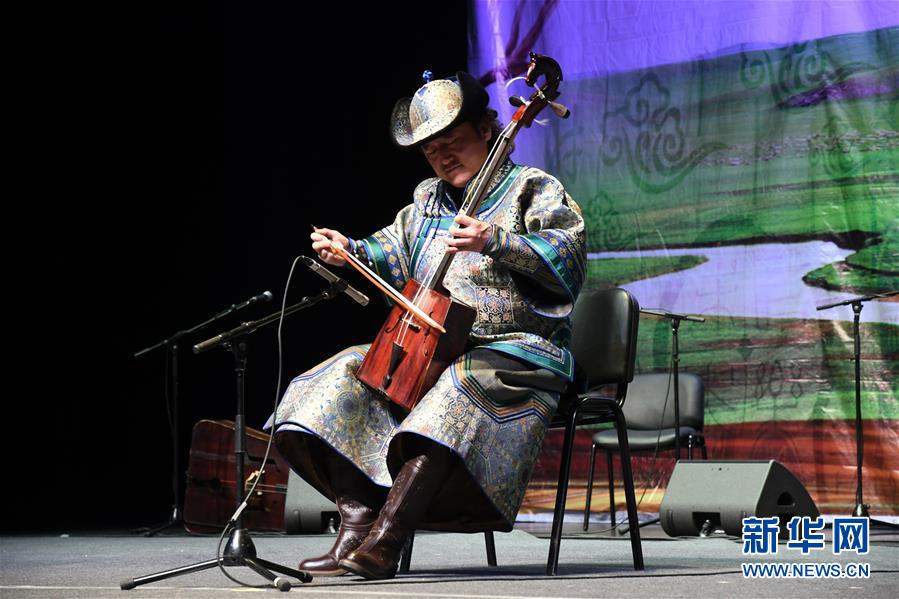 1月25日,在突尼斯首都突尼斯市,中国内蒙古艺术团的演员在“欢乐春节”演出中表演。 新华社发(阿代尔摄)
