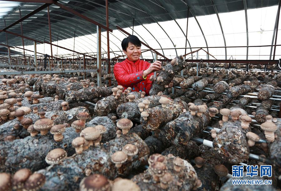1月26日,内丘县旭农农业开发有限公司员工在大棚内打理香菇。 新华社记者 牟宇 摄