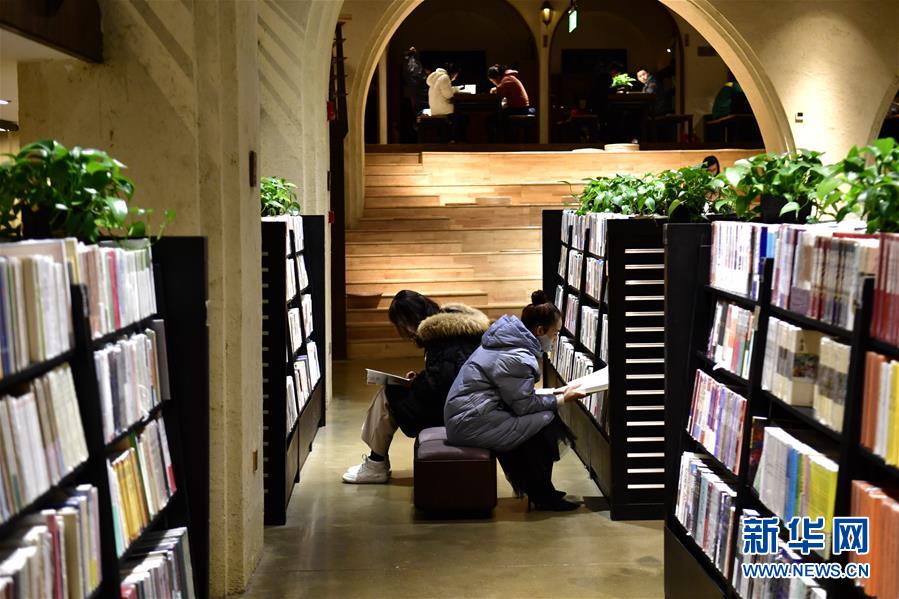 1月26日,学生在西宁几何书店内阅读。 新华社发(张龙 摄)