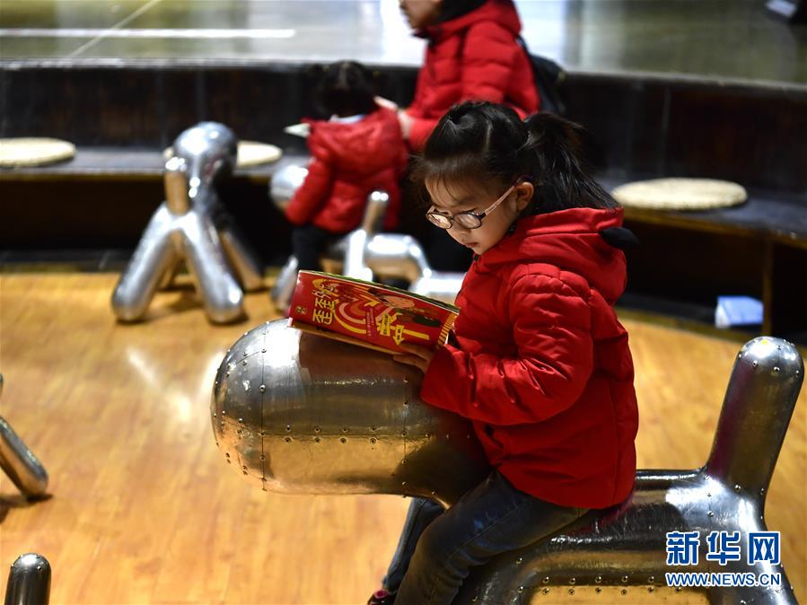 1月26日,一名小朋友在西宁几何书店内阅读。 新华社发(张龙 摄)