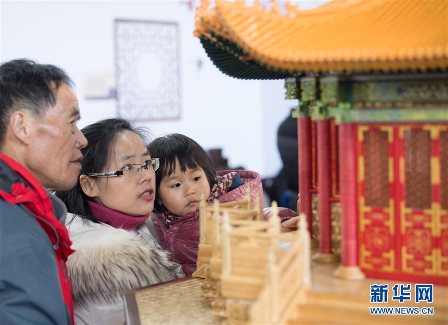 1月26日,游客在梅渚古村欣赏乡村艺人制作的竹编工艺品。 新华社记者翁忻旸摄