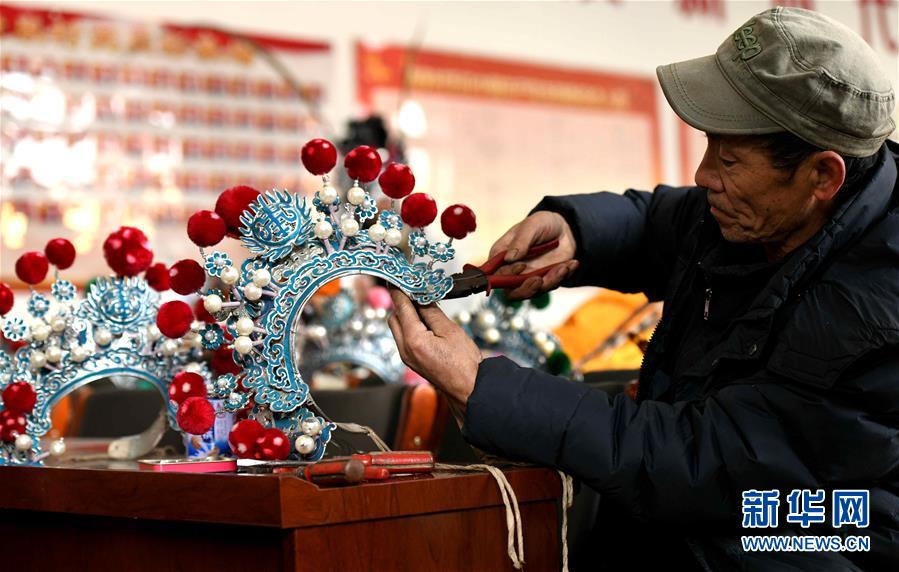 1月26日,在青泉村村民活动中心,村民在整修道具。 新华社发(陈其保 摄)