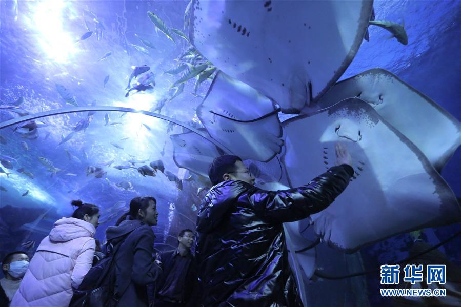 1月26日,人们在贵州极地海洋世界海底遂道参观。 新华社发(张晖 摄)