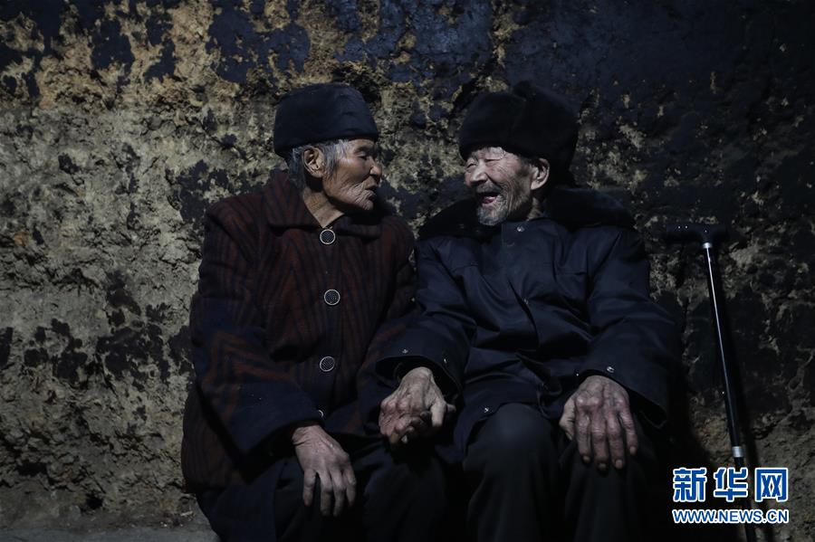 1月25日,冯万才(右)和妻子杨文英在一起。 新华社记者 江宏景 摄