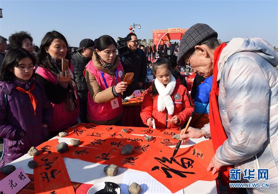 城门挂春联 书写金陵春
