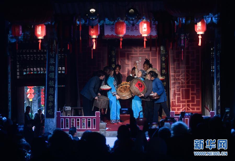 1月27日,外国友人和村民在“国际村晚”上共同表演节目。 新华社记者 黄宗治 摄