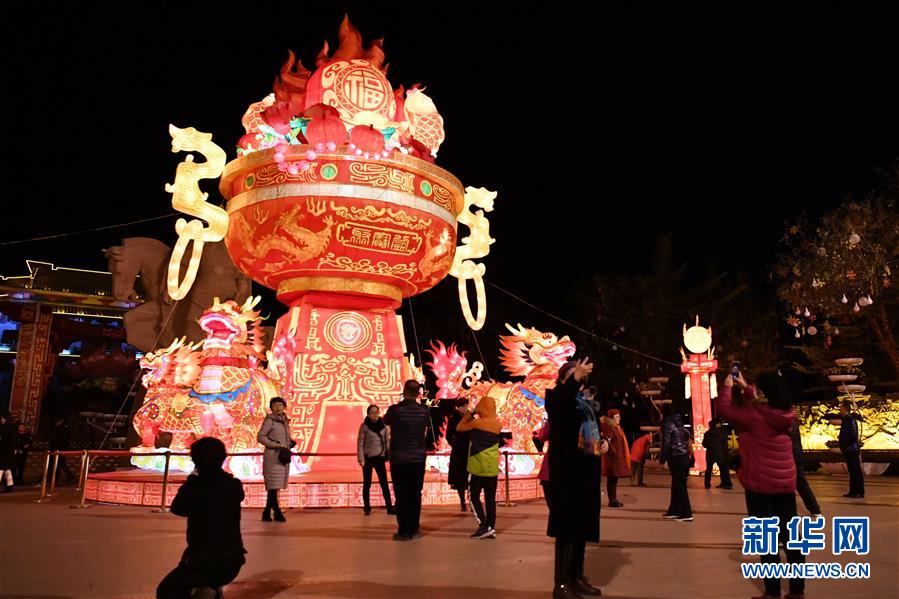 1月27日,2019金城西固迎春灯会全面亮灯调试。 新华社记者 陈斌 摄