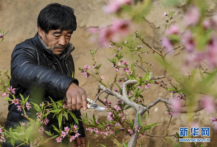 1月27日,在新疆鄯善县辟展镇大东湖温室大棚基地内,种植户修剪桃树花枝。 新华社记者 王菲 摄