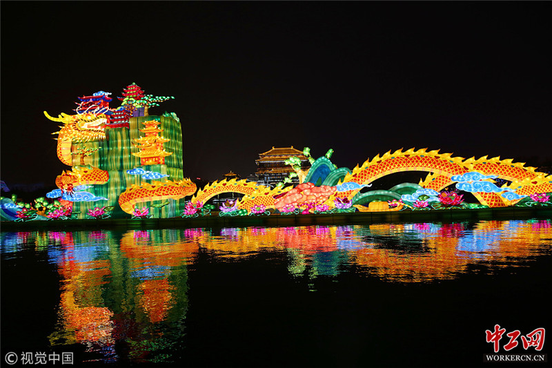 2019年1月27日,西安,水上巨龙彩灯。魏永贤/视觉中国