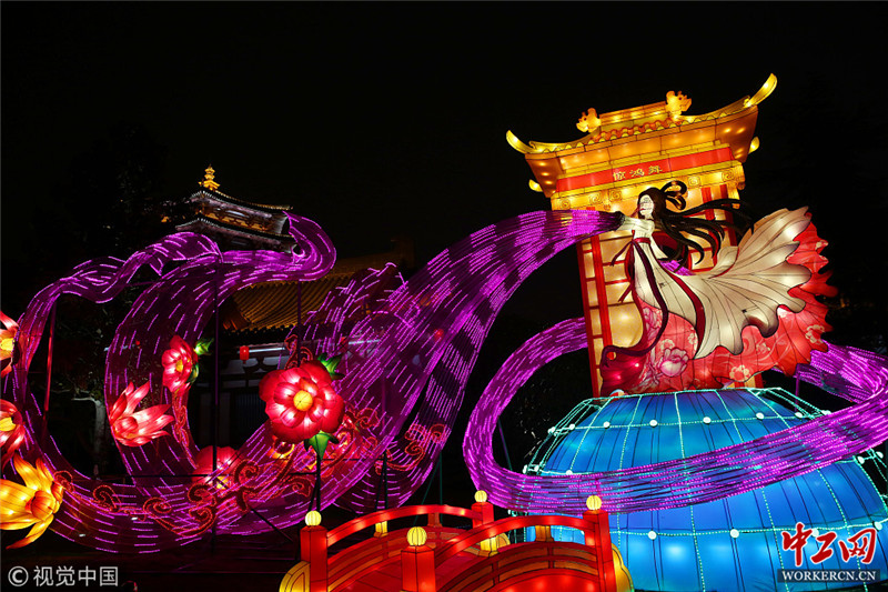 2019年1月27日,西安,唐玄宗早期宠妃——梅妃的成名舞蹈《惊鸿舞》被做成彩灯,流动的灯光是舞者的长袖。魏永贤/视觉中国