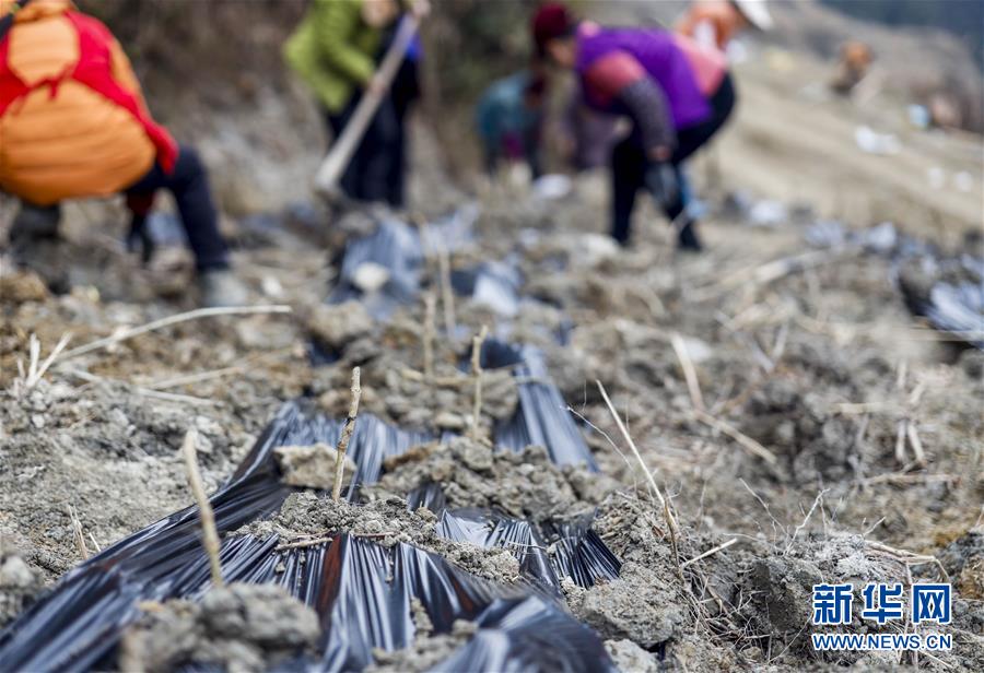 长春村村民在田地里栽种桑树苗(1月24日摄)。 新华社记者 刘潺 摄