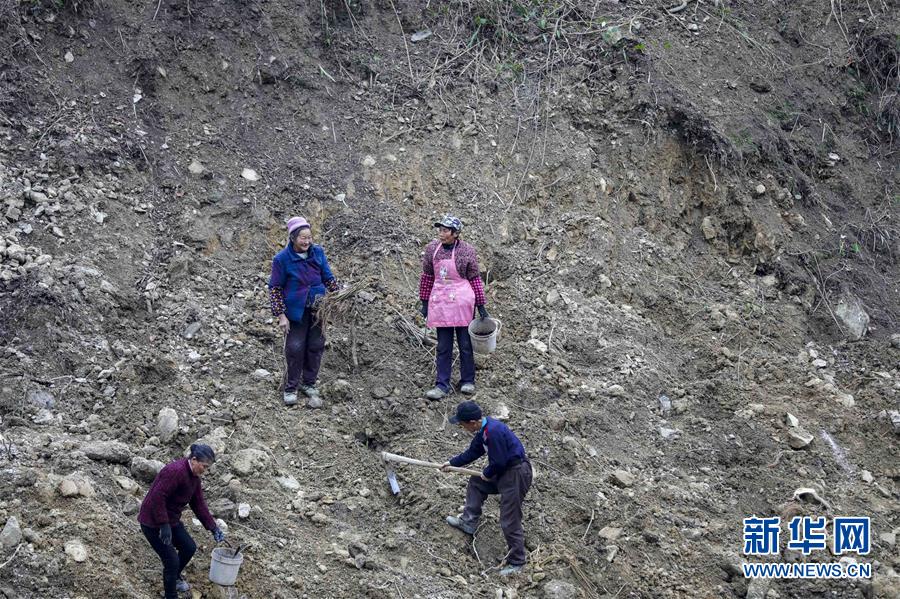长春村村民在平整出来的土地里栽种桑树苗(1月24日摄)。 新华社记者 刘潺 摄