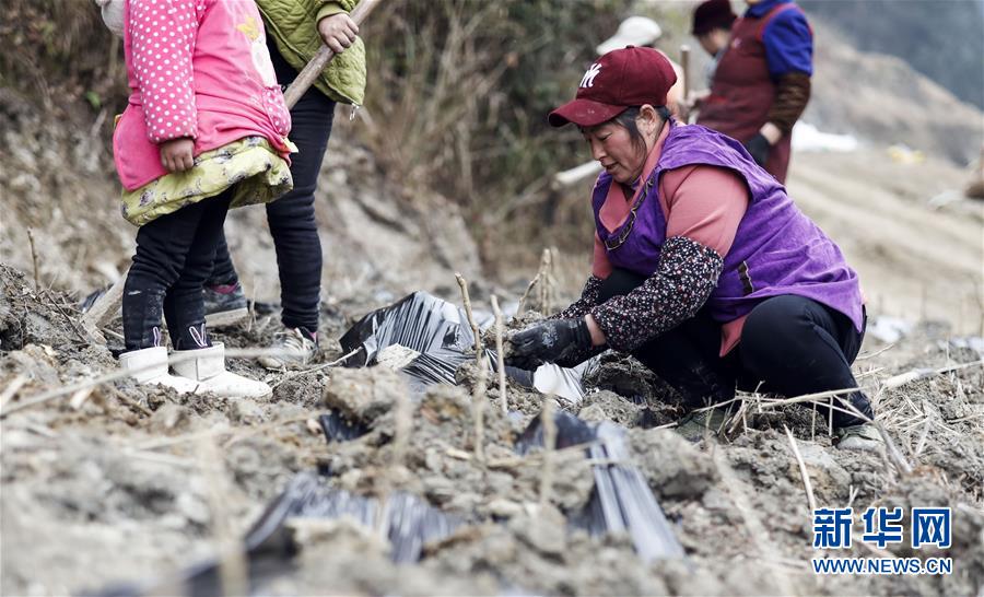长春村村民在平整出来的田地里栽种桑树苗(1月24日摄)。 新华社记者 刘潺 摄