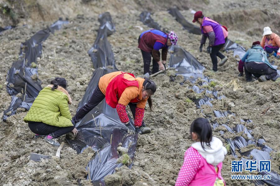 长春村村民在田地里整理保温用的薄膜(1月24日摄)。 新华社记者 刘潺 摄