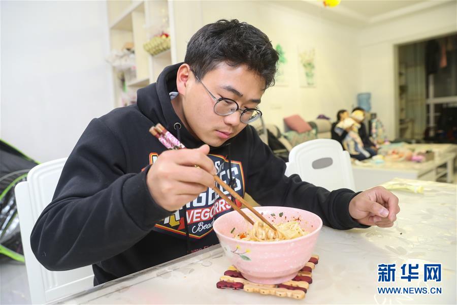 1月26日,杨孟平在姐姐家吃面,一旁的姐姐、姐夫在拉家常。新华社记者 丁汀 摄