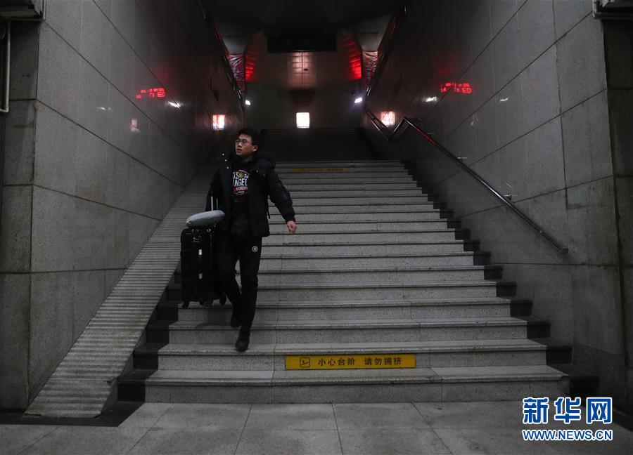 1月26日,在成都火车站,杨孟平提着行李准备出站。新华社记者 丁汀 摄