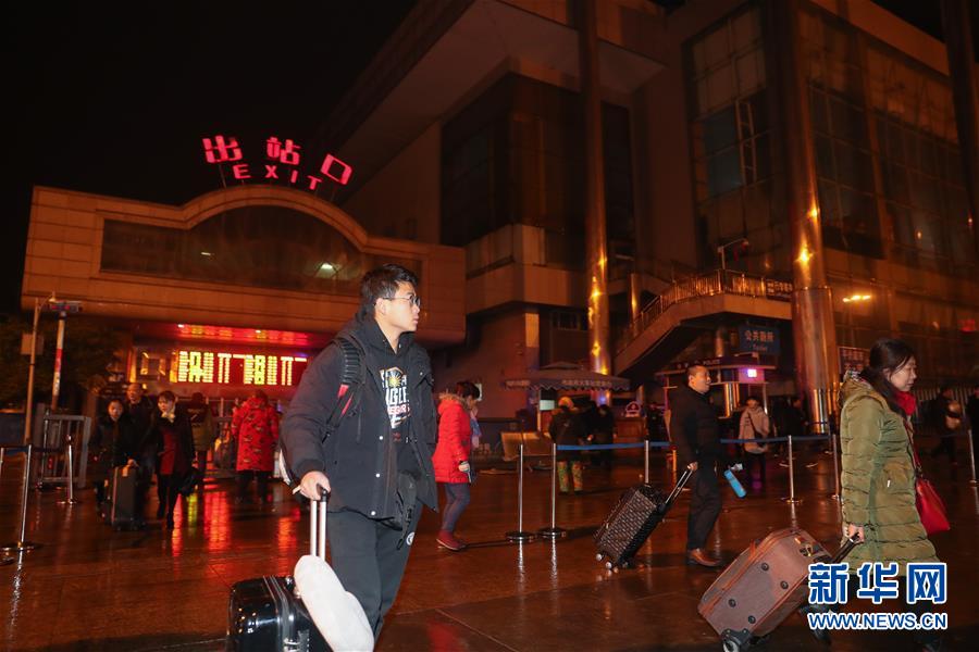 1月26日凌晨,杨孟平走出成都火车站。新华社记者 薛玉斌 摄