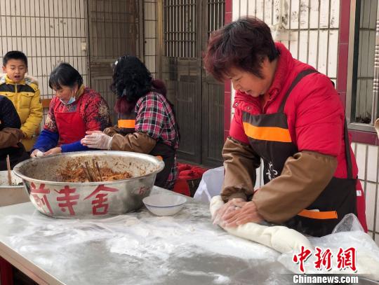 团子象征着“团团圆圆”,村民们正在包团子。 孙权 摄