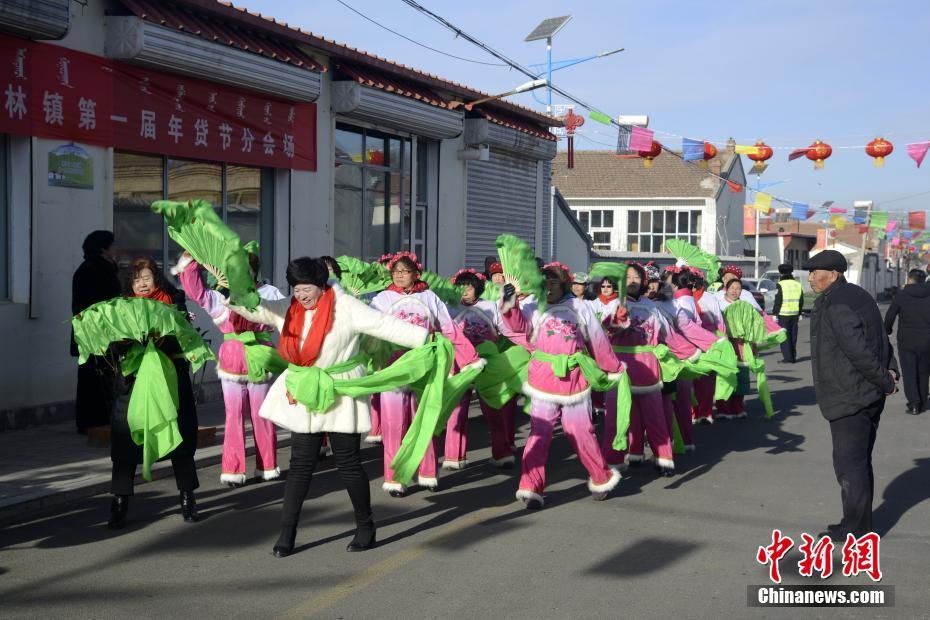 1月28日,村民在街道上扭秧歌迎小年。当日是农历腊月二十三,也是北方民间俗称的“小年”,内蒙古呼和浩特市榆林镇开展扭秧歌、写春联、土特产展销等活动,喜迎新春佳节。中新社记者 刘文华 摄