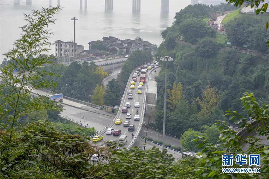 紧靠长江边,在一片绿色包围下的重庆城市公路(2018年12月2日摄)。 新华社记者 刘潺 摄