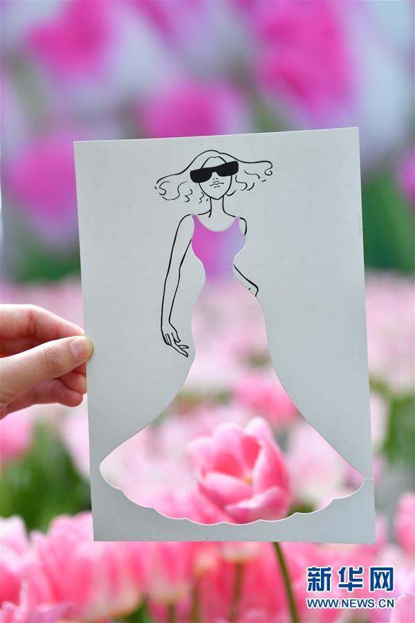游客在百万葵园用镂空卡片做前景拍摄郁金香(1月22日摄)。 近日,广东南沙自贸区百万葵园在多个主题场景中展示从荷兰库肯霍夫公园引进的30多个品种的郁金香,宛如一个浪漫的郁金香世界。 新华社记者刘大伟摄