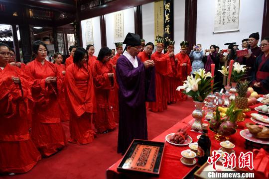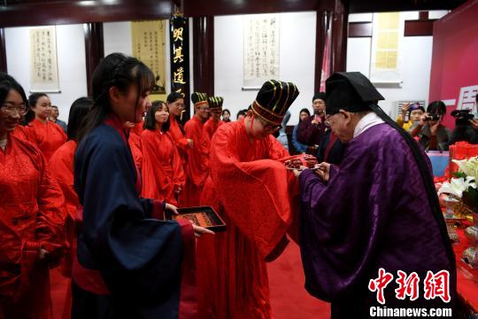 学员身着汉服进行谢年礼。 王东明 摄
