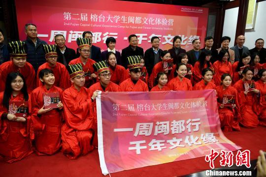 1月28日,第二届榕台大学生闽都文化体验营在福州开营。开营仪式上,两岸大学生营员身着汉服进行谢年礼。随后,营员还与嘉宾一起体验包肉燕、春卷等年俗。
