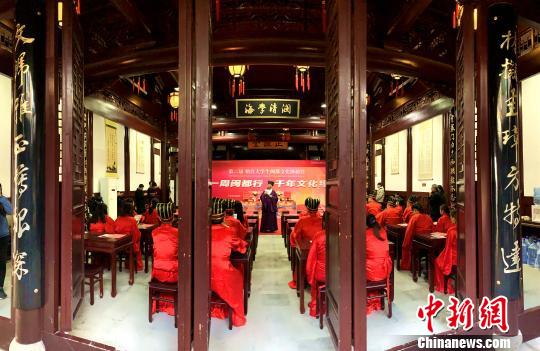 1月28日,成都IFS广场周围三台巡逻的智能安保机器人吸引过往民众驻足。机器人遇到前方有阻挡会自动避让,并提醒过往民众自己正在巡逻。中新社记者 刘忠俊 摄