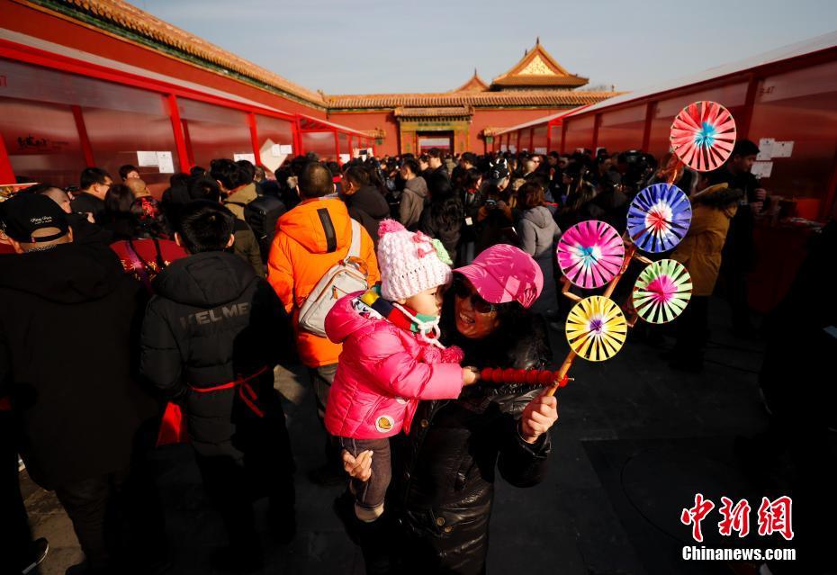 1月28日,己亥春节前夕,故宫博物院“中华老字号故宫过大年展”开幕。来自山东、北京、天津、山西、吉林、上海、江苏、浙江、安徽、河南10个省(市),以及5家非物质文化遗产传承人,共计150家单位参加此次活动。展览地点位于慈宁宫花园、慈宁门外广场以及隆宗门外广场。观众在展览期间,观赏到富有浓郁地方特色的匠心产品和独特技艺,品尝到别具风味的传统小吃和特色美食,了解到历史底蕴相通的民间老字号与宫廷文化的悠久渊源。阿胶、老酒、绸缎、名茶、漆器、珐琅、徽笔、歙砚……这些老字号产品的到来,为紫禁城即将到来的600年华诞增光添彩,还让观众们在故宫博物院全方位体会到浓浓的新春气息。中新社记者 杜洋 摄