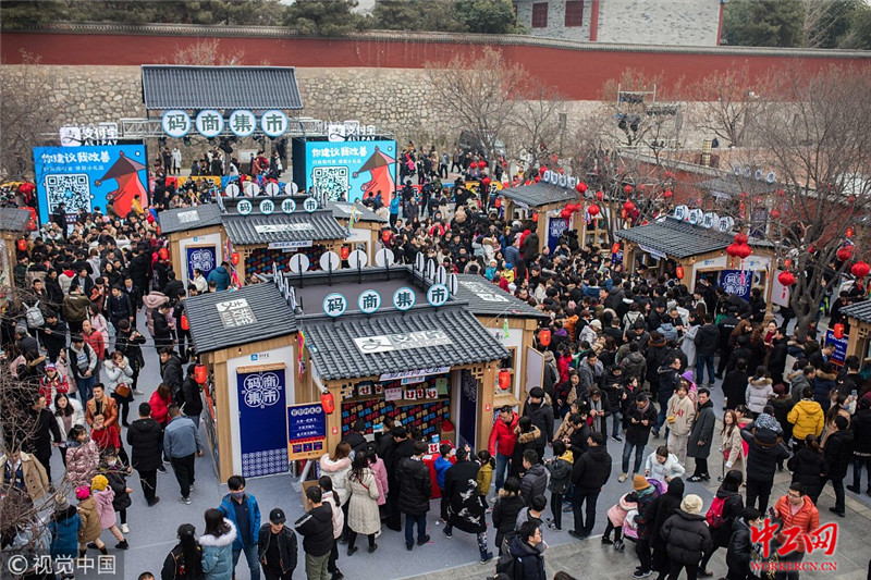 2019年1月26日,西安,码商集市上,网红石榴哥利用自己的影响力帮同村的村民卖蜂蜜和山药,力争为每户村民赚800元,大家一起过个好年。锐图-金柯/视觉中国