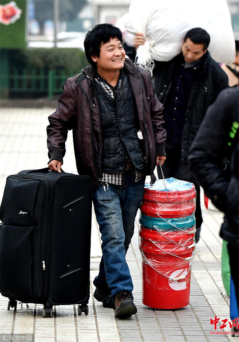 2019年1月28日,河南省洛阳火车站,一位旅客提着不少机油桶准备进站乘车。张怡熙 LOOK洛阳/视觉中国