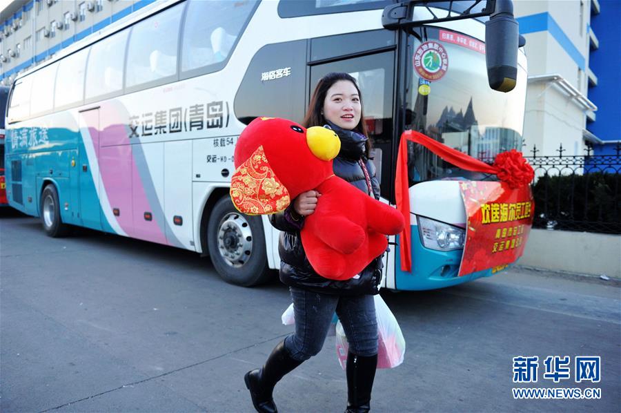 当日,山东青岛西海岸新区海尔工业园的3600余名工作人员坐上由青岛市总工会和交运集团公司组织的返乡直通车,免费从工厂坐车直达家门口。据悉,青岛市自2006年开始,连续14年为企业员工开通返乡过年直通车。 新华社发(于少月 摄)